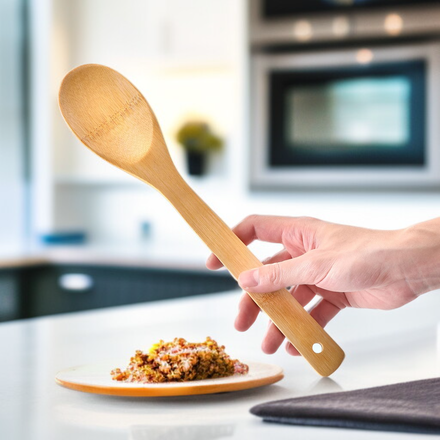 ● Umweltfreundliches und nachhaltiges Küchenwerkzeug-Set aus Bio-Bambus, ideal für umweltbewusste Haushalte und ein gesundes Kocherlebnis. ● Das 5-teilige Set inklusive praktischem Halter bietet vielseitige Einsatzmöglichkeiten und sorgt für Ordnung sowie schnellen Zugriff beim Kochen. ● Langlebiges, robustes Material schützt Ihre Kochutensilien vor Verformung, ist lebensmittelecht und leicht zu reinigen – perfekt für den täglichen Gebrauch. ● Natürliche Bambusoptik verleiht Ihrer Küche einen modernen, stilvollen Look und passt zu jedem Einrichtungsstil. ● Die ergonomische Form der Küchenhelfer sorgt für angenehme Handhabung und macht das Zubereiten von Speisen besonders komfortabel.
