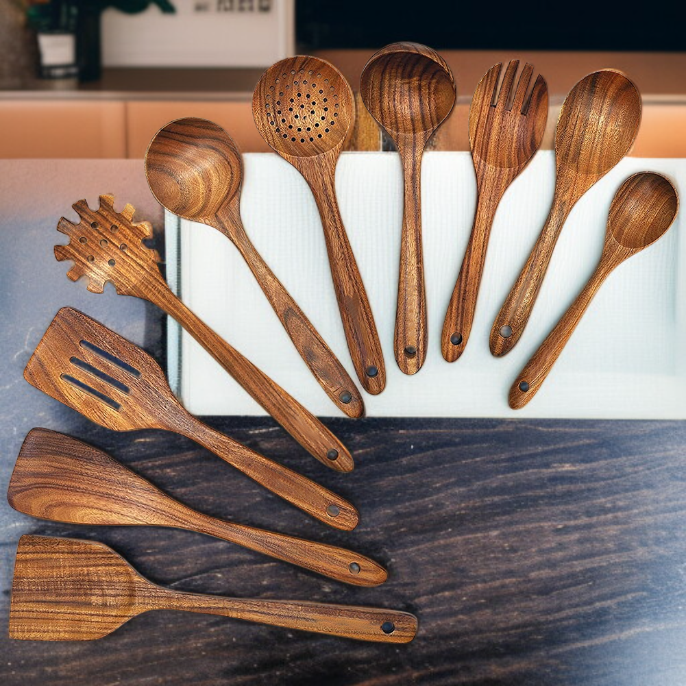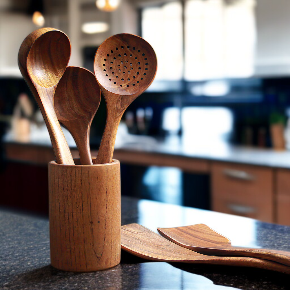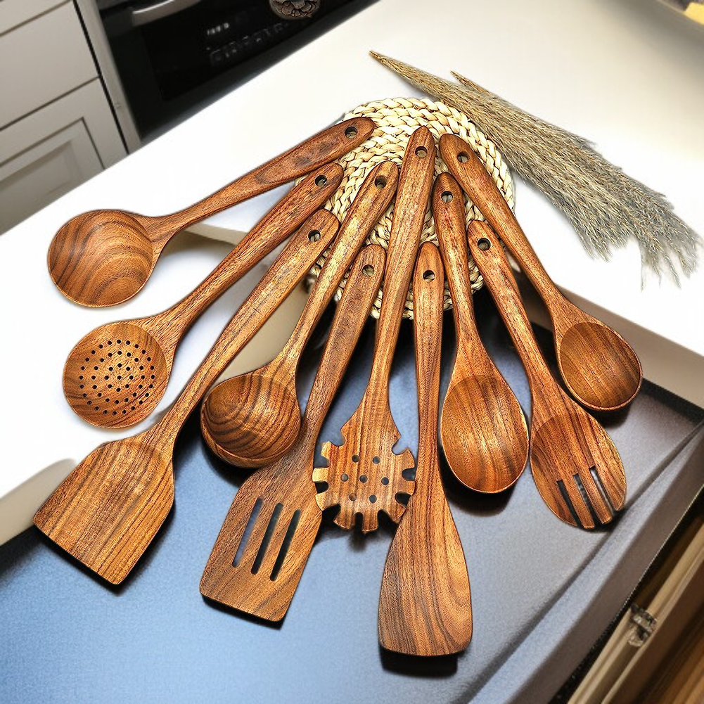 ● Hochwertiges Küchenutensilien-Set aus robustem Naturholz, ideal für den täglichen Gebrauch und langlebig für viele Kochabenteuer. ● Das Set beinhaltet Holzspatel, Suppenkelle, Schlitzkelle und Pastalöffel – vielseitig einsetzbar für unterschiedlichste Gerichte und Kochtechniken. ● Schonend zu Töpfen und Pfannen dank glatter Holzoberfläche, verhindert Kratzer und verlängert die Lebensdauer Ihres Kochgeschirrs. ● Umweltfreundlich und nachhaltig produziert, frei von schädlichen Chemikalien – für ein gesundes Kocherlebnis in Ihrer Küche. ● Ergonomisches Design mit angenehmem Griff sorgt für komfortables und sicheres Arbeiten beim Kochen, Servieren und Portionieren.